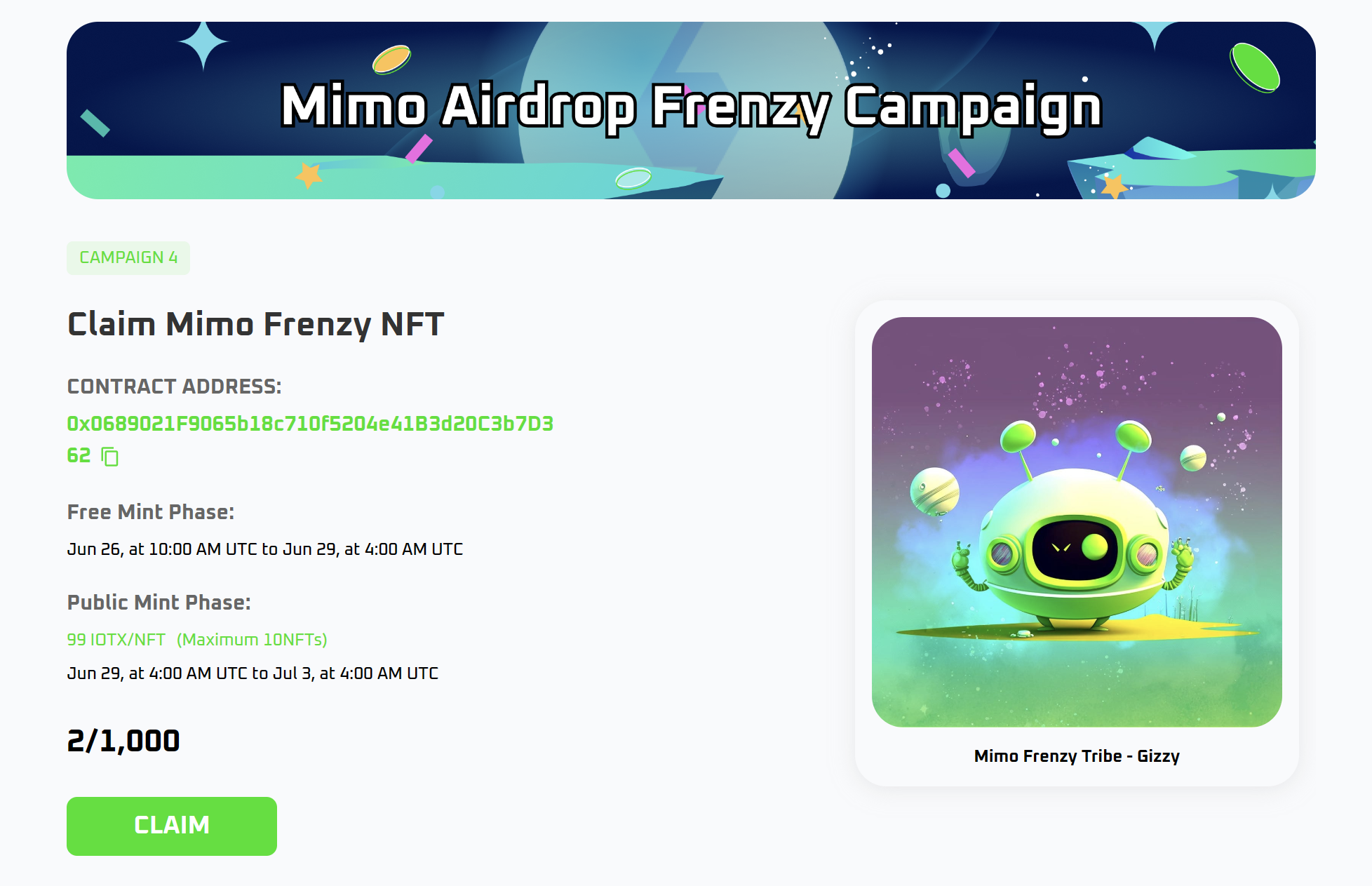 Now, as we approach the final chapter of the Mimo Airdrop Frenzy with the release of the last NFT, Gizzy, we invite you to click on the link below for the latest information: https://mimo.exchange/activity/gizzy